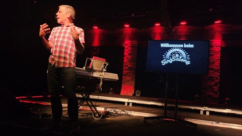 Etwa alle zwei Monate treffen wir uns in der Traunreuter Theaterfabrik und singen uns quer durch ein buntes Repertoire aus bekannten Evergreens, Gassenhauern, Schlagern und aktueller Pop-Rock-Musik. Wer im Publikum sitzt, kann den ganzen Abend mitsingen - so laut er will. Vorkenntnisse brauchst du keine. Nur Freude am Singen soll bitte jeder mitbringen. Die Texte werden zum Mitlesen an mehrere Leinwände projiziert. Du wirst live von einem erfahrenen Musiker und Chorleiter angeleitet und begleitet. Echt und in Farbe, purer Spaß - sei dabei und mach mit!
